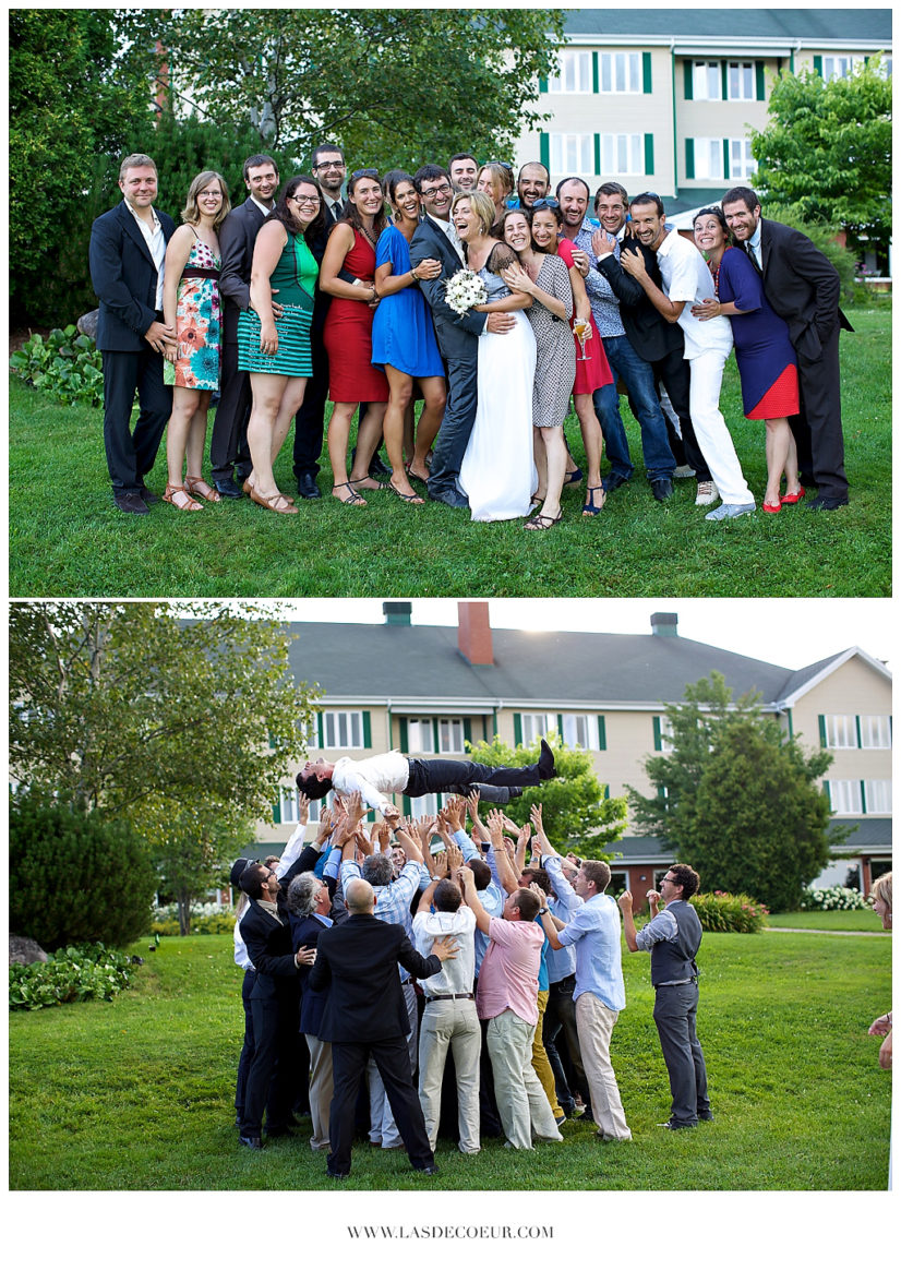 Un superbe « chalet » en bois de L’Auberge du Lac à L’eau Claire nous a accueillis pour les préparatifs des mariées et les photos de couple. Une cérémonie très émouvante, au bord de l’eau, a scellé leur union. Pour terminer par une soirée très mouvementée !